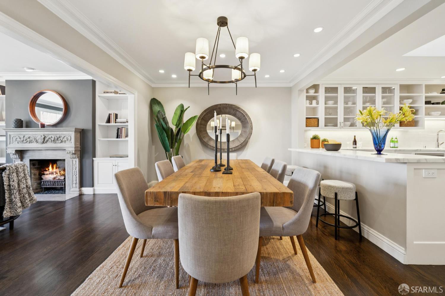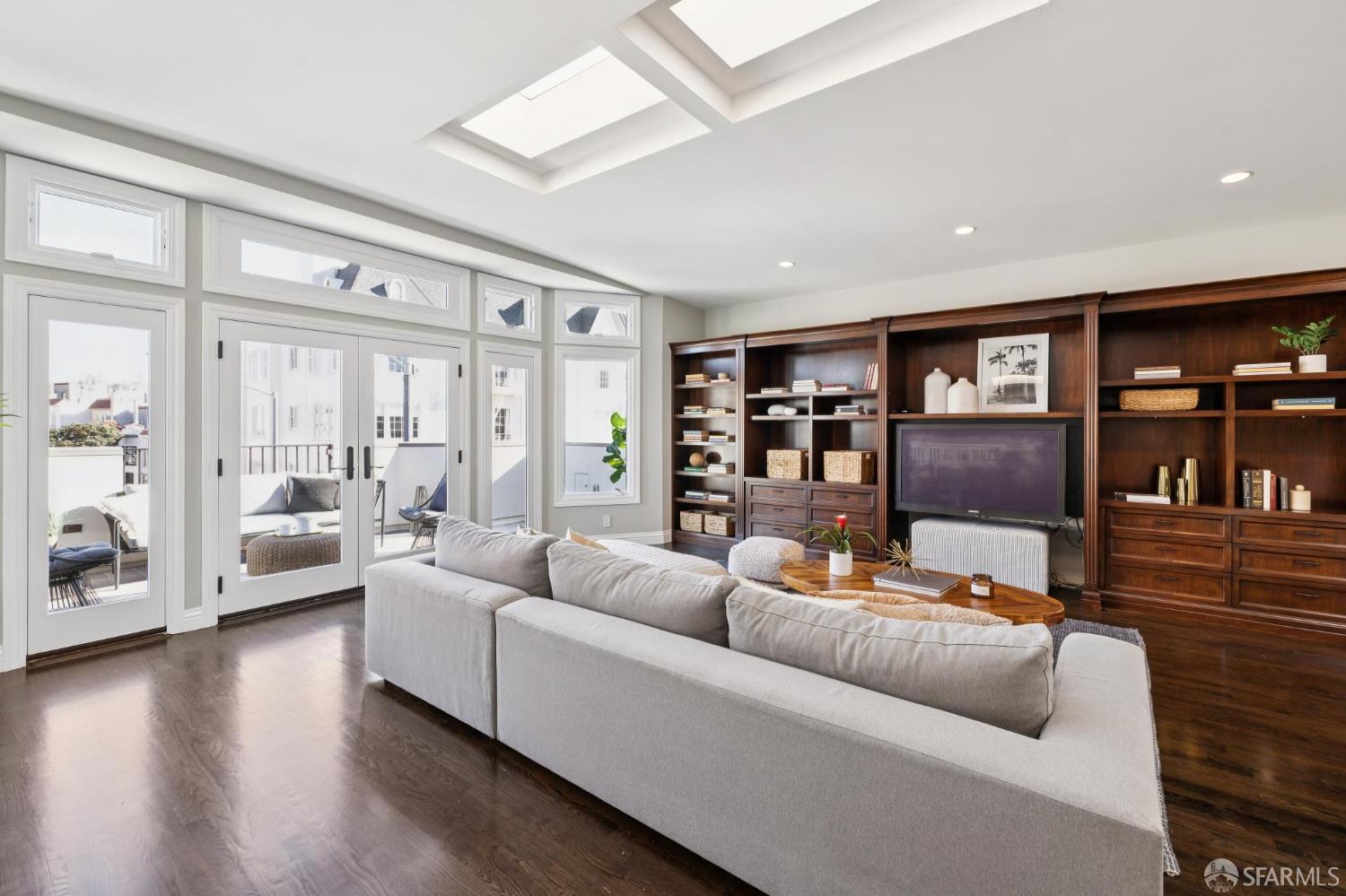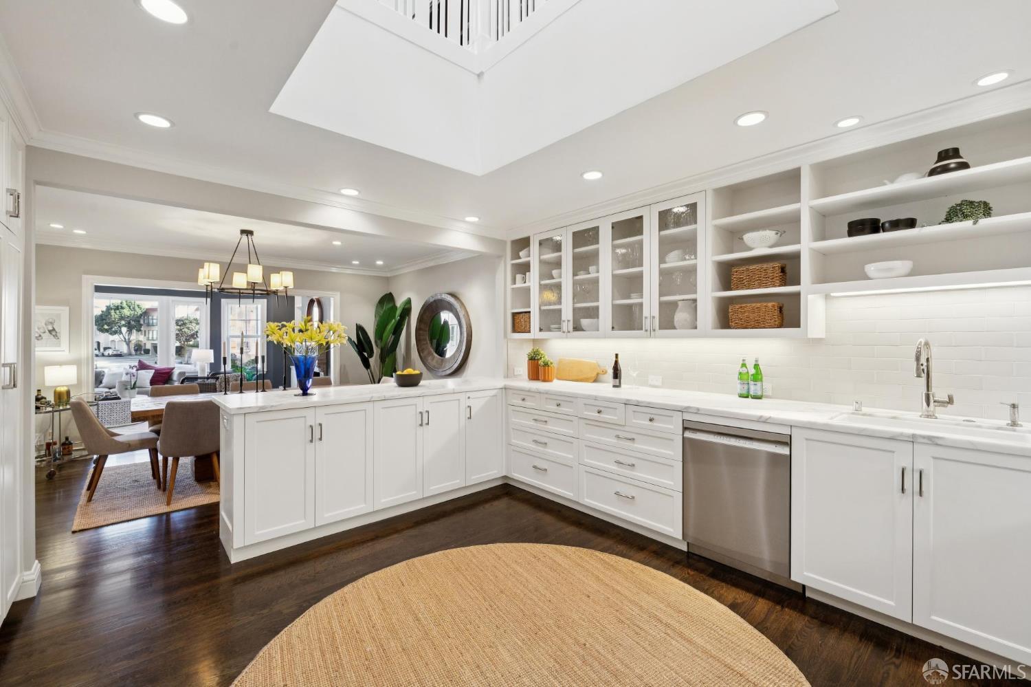 Don't miss this opportunity to own a rare remodeled 4 bedroom Marina home on 3 levels -- just steps to the cafes, boutiques & fine dining on vibrant Chestnut St & the natural beauty of the Marina Green, Crissy Field & The Presidio. The gracious entry welcomes you up to the large formal living room w/stately stone mantle fireplace & built-in shelving, elegant dining room & state-of-the-art sky-lit kitchen boasting professional grade appliances, abundant custom cabinetry, breakfast bar & gorgeous marble counters. The luxurious primary suite features custom closets, a separate office/nursery & spa-like en-suite bathroom w/dual marble vanity & heated floors. An elegant 1/2 bath and coat closet complete this level. Stairs lead up to the massive family room w/entertainment area & 2nd bedroom suite w/full bathroom. 2 walk-out patios offer city & bridge views. The lower level offers 2 large bedrooms opening to the serene landscaped garden w/fountain & fireplace (perfect for al-fresco dining), a full bathroom, laundry room and closet. Beautiful wood floors, numerous skylights, dual-zone heating, 500 wine bottle cooler, dual-paned windows, period details, recessed lighting, 2+ parking, abundant storage, alarm and much more...!